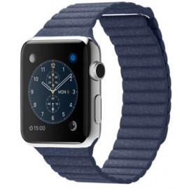 ساعة ابل - 42 مم, هيكل من الستانلس ستيل و سوار من الجلد لون ازرق فاتح MJ462